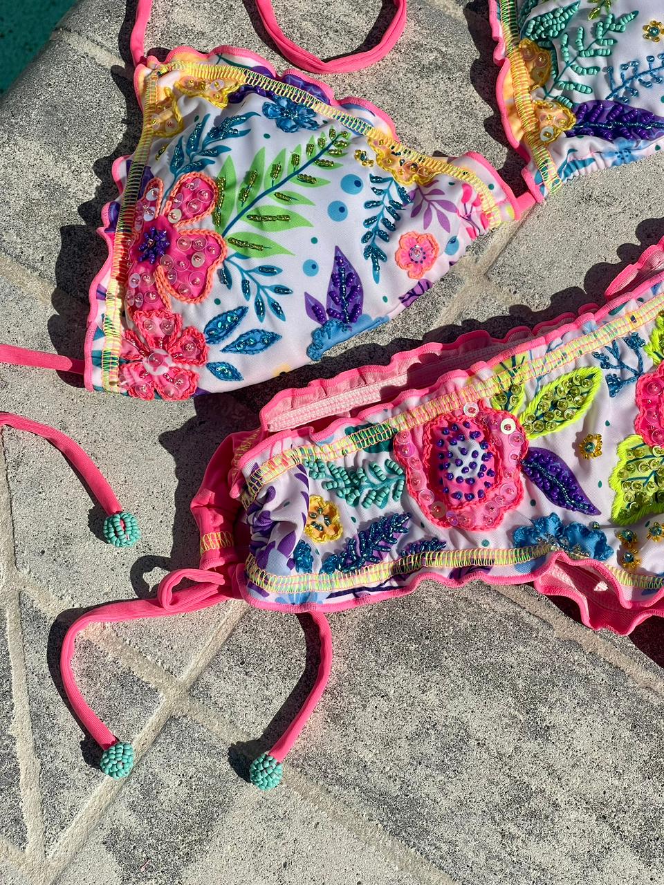 Each piece is meticulously designed and handcrafted by our talented team in Colombia, ensuring that every bikini is not only unique but also crafted with the highest level of detail.
