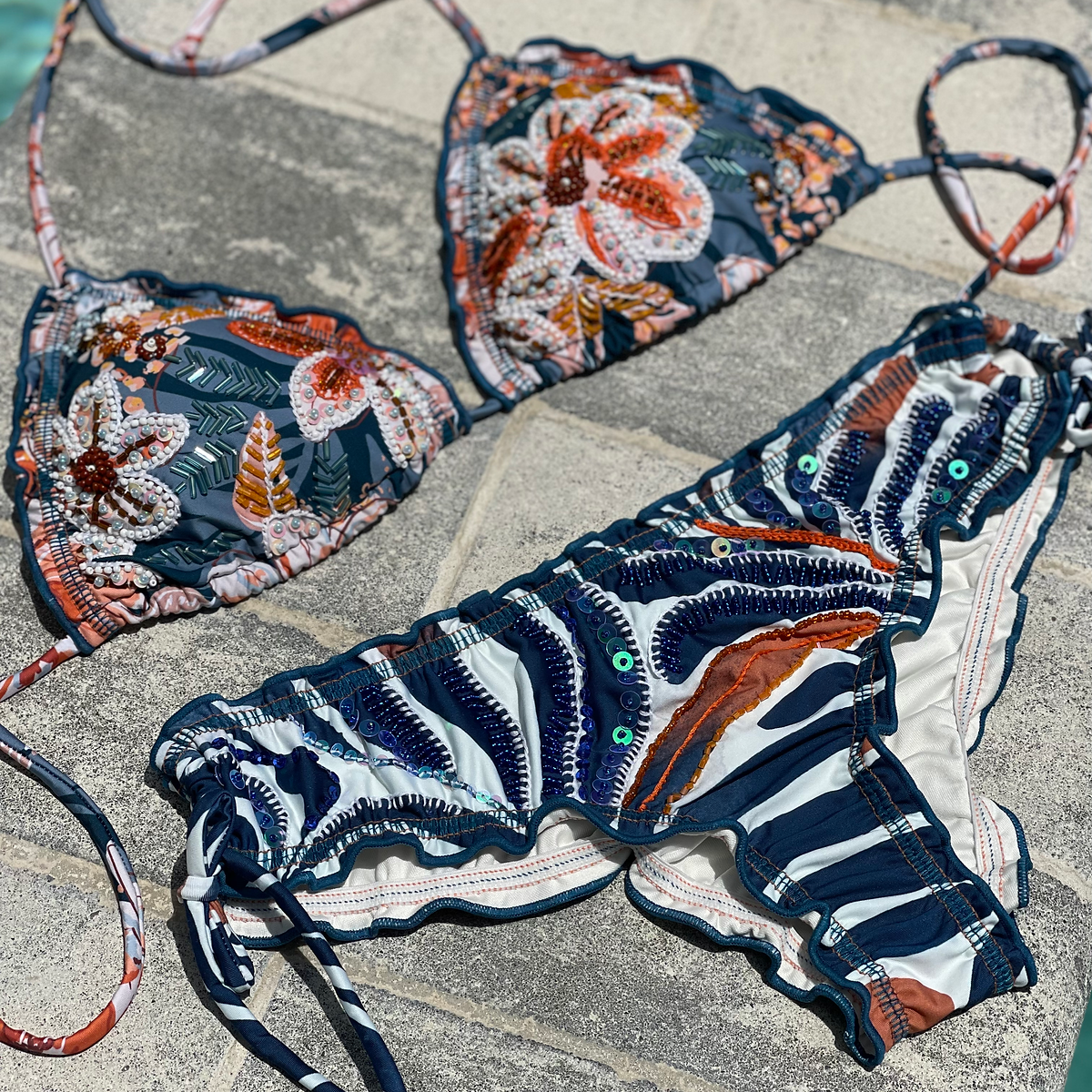 Each piece is meticulously designed and handcrafted by our talented team in Colombia, ensuring that every bikini is not only unique but also crafted with the highest level of detail.
